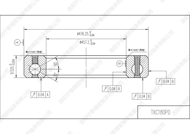 | 产品类型 | 等截面薄壁四点接触球轴承TXA017 |
