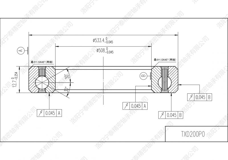| 产品类型 | 等截面薄壁四点接触球轴承TXA020 |